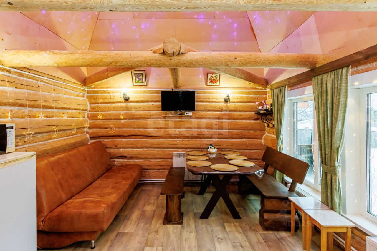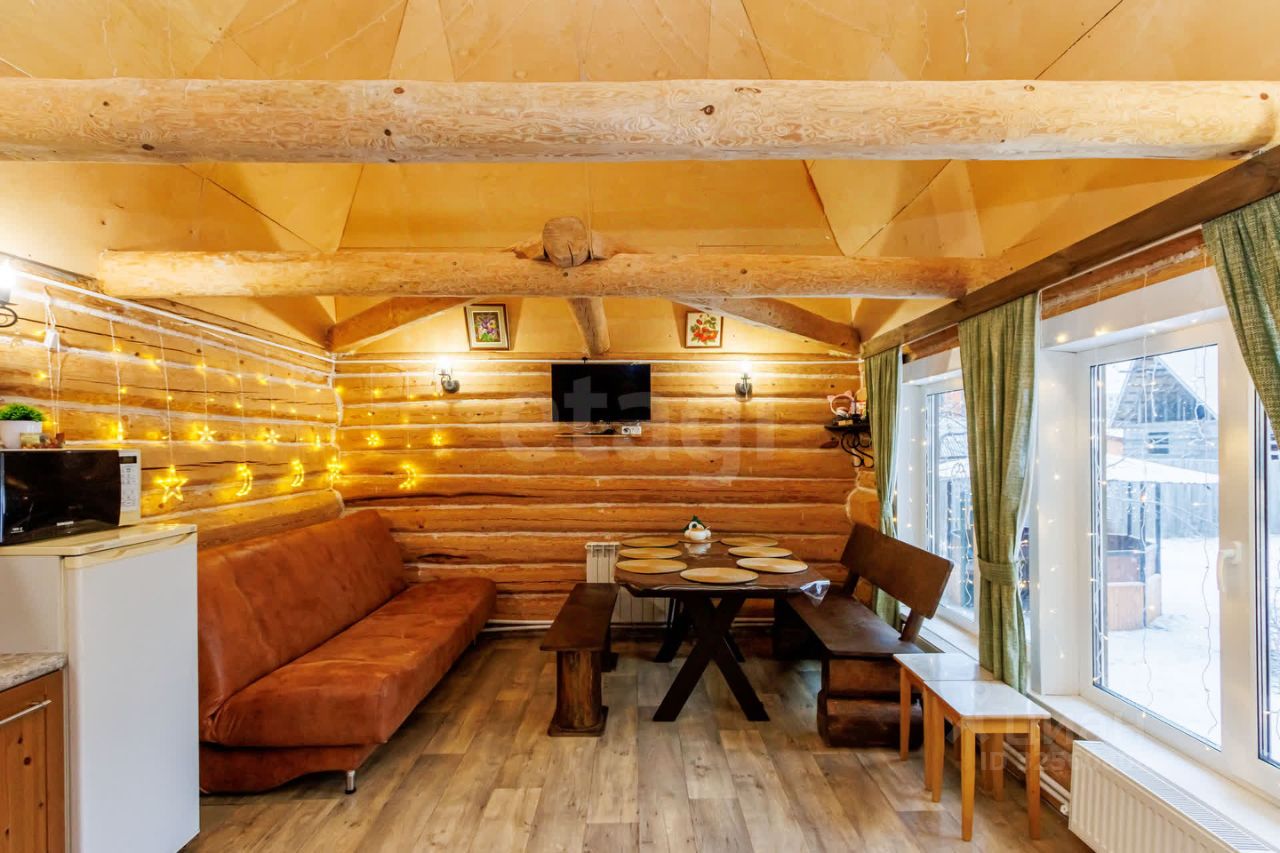 Дом состоит из просторной кухни гостинной , Банного помещения , Санузла и Спальной комнаты на втором этаже ( крыша мансардной комнаты утеплена для зимнего проживания) .