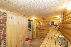 — Первый этаж: кухня и добротная баня из бруса, отделанная вагонкой. После неё — сон как в детстве.
