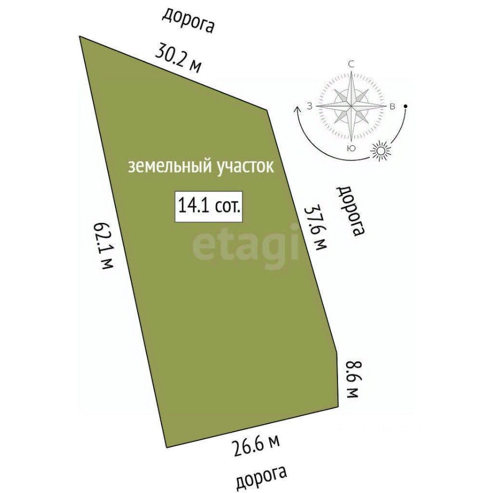 Площадь: 14.5 соток — достаточно места для большого дома, сада, огорода,