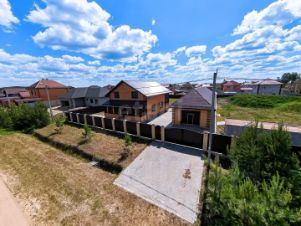 Продается капитальный дом площадью 244 кв.м на участке 15 соток в коттеджном поселке "Зубаревские просторы" в Перевалово. Объект включает основное здание и комплекс из гаража, бани и подсобного помещения общей площадью 168 кв.м. Планировка дома функциональна и продумана: на первом этаже расположена кухня-гостиная, санузел и гардеробная, на втором — четыре изолированные комнаты, второй санузел и гардеробная. Из кухни-гостиной есть выход на веранду, с которой открывается доступ на участок. Дом построен из кирпича с панельными перекрытиями, все инженерные системы централизованы или автономны и рассчитаны на постоянное комфортное проживание. Электроснабжение и газ подведены, для водоснабжения обустроена скважина, а для канализации — септик объемом 10 куб.м. Отопление и горячее водоснабжение обеспечивает двухконтурный газовый котел, система отопления комбинированная: водяные теплые полы на первом этаже и в санузле на втором, а также радиаторы. Дополнительные преимущества — входные двери с терморазрывом, современная чистовая отделка, система сигнализации и благоустроенная территория с покрытием из брусчатки. Поселок обладает развитой инфраструктурой с детским садом, школой, почтой и магазинами, а также обладает регулярным транспортным сообщением.