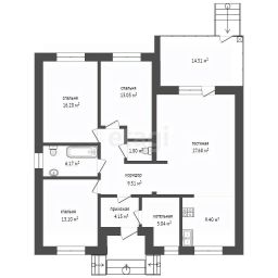 Просторная планировка 140 м² 3 комнаты, кухня-гостиная 30 м², большой санузел, гардеробная.