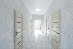 Дом полностью готов. Потолок натяжной, на полу керамогранит. В спальнях линолеум. На всех стенах декоративная штукатурка, которую мы можем покрасить по вашему желанию абсолютно бесплатно.