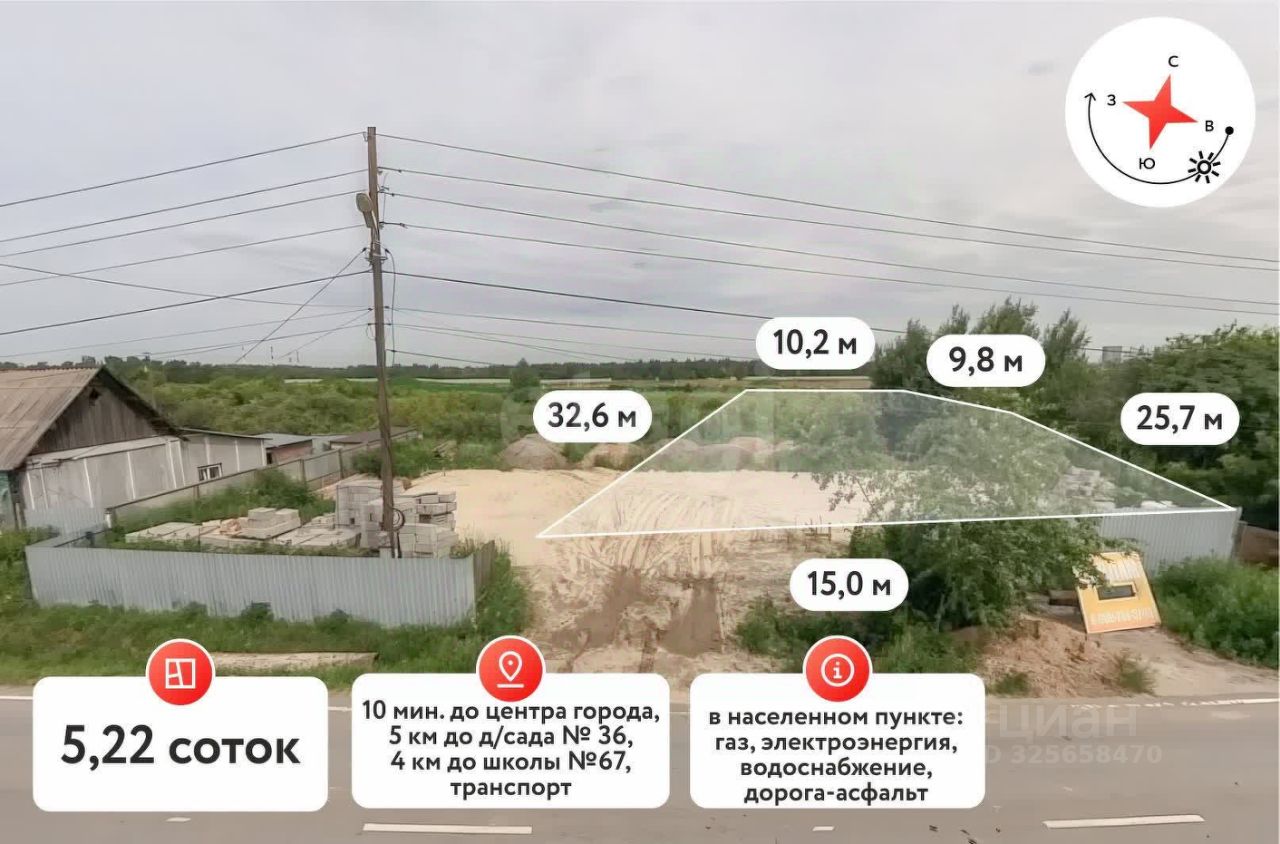 При этом, до центра всего 10 километров по широким дорогам. А до объездной дороги еще ближе - около 5 км.