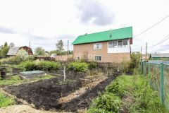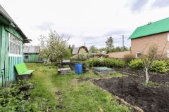 На участке много насажений: смородина, 3 яблони, малина, клубника, цветы.