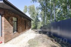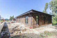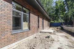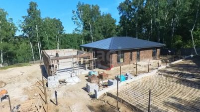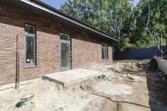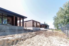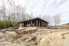 Одноэтажный жилой дом с гаражом на два машино места и баней которой окна выходят на безграничные луга построен на прочном плитном фундаменте с ростверком. Использованы качественные материалы: арболитовые блоки, утеплитель ППС и керамический кирпич(толщина стены 520 мм) . Высота потолков — 3,2 метра, что создает ощущение простора и света. В гараже установлена ворота с автоматикой.