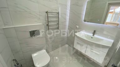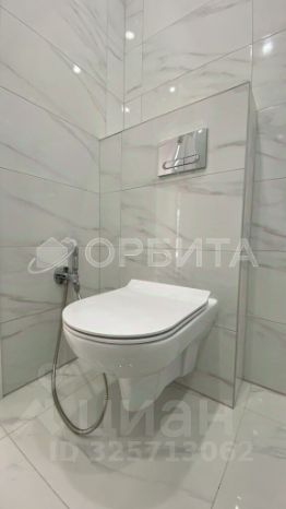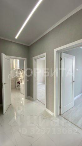 Дизайнерский, керамогранит на полу, натяжные потолки со световыми линиями, межкомнатные двери, душевая кабина, инсталляция, раковина со смесителем, зеркало с подсветкой.