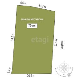 Общей площадью 6.97 сотки, с имеющимся домиком.
