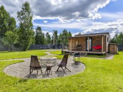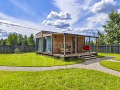 Отдельно стоящая модульная баня с зоной отдыха.