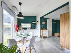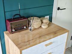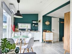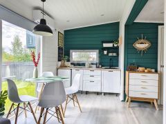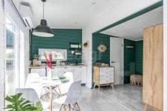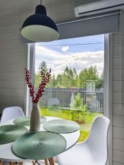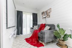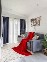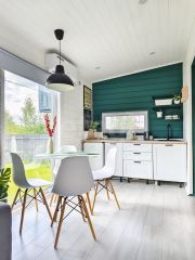 Абсолютно всё, что вы видите на фото остается после продажи. Мы привлекали проф.дизайнера для создания дизайн-проекта нашего дома, авторского надзора на стадии ремонта, а так же полного оснащения мебелью, техникой и элементами декора. Ничего случайного - все элементы выверенны и гармонично сочетаются по стилистике. Многие предметы делались на заказ, как например, столик в бане, деревянные стулья и стол в зоне очага. Особого внимания заслуживают выразительные цветовые решения, использованные в проекте: много белого, благородный сложный зеленый, графичный черный, в акцентах смелый красный и конечно же много цвета натурального дерева.