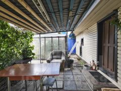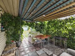 Имеется модульный домик, баня с навесом под зону отдыха, сарай, теплица, уличный туалет. Электричество заведено, водоснабжение из скважины. Участок разработан, есть насаждения: яблоня, малина, смородина, клубника. В теплице растут огурцы, помидоры, перцы. На грядках морковь, свекла, зелень, кабачки, тыква.