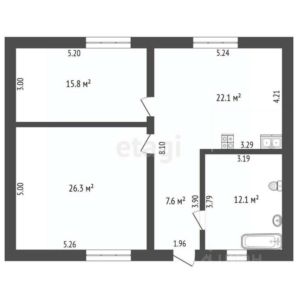 Планировка: просторная кухня-гостиная, две изолированные комнаты, котельная (можно при желании сделать три комнаты) и большой совмещенный санузел.