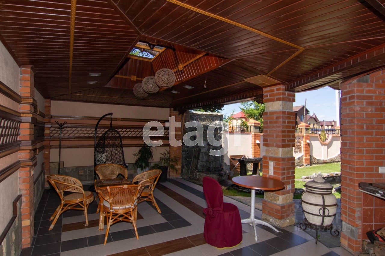 На участке выполнен ландшафтный дизайн с красивым фонтаном , цветниками и хвойниками . Есть место для отдыха с качелями и зоной барбекю . В летнем домике есть зона приготовления еды.