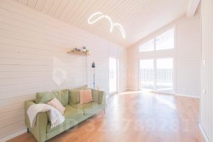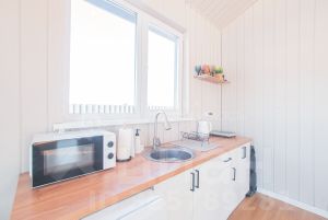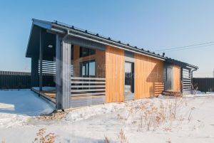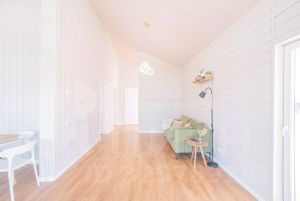 В доме есть кухня-гостиная, площадью 30 м, на которой комфортно размещается кухонная зона, обеденная зона и зона отдыха, с выходом на большую террасу и видом на прекрасное поле с лесом. Так же в доме две спальных комнаты. В доме выполнен ремонт по дизайн-проекту из самых качественных материалов.