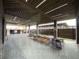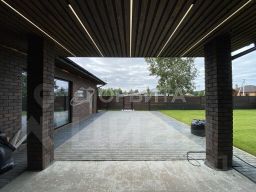 Большой навес для парковки и крытая терраса с качелями комфорт в любую погоду