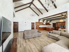 Представляем Вашему вниманию великолепный загородный дом в одном из самых популярных коттеджных поселков - Перевалово - 20-й км Московского тракта. Это больше чем просто дом - это огромная усадьба, поражающая воображение масштабом, подходом, эстетикой! На потрясающем земельном участке 40 соток с ландшафтным дизайном, многолетними деревьями, плюшевыми газонами, садовой и зонами для отдыха разместился комплекс построек в составе которого основной жилой дом 270 кв.м, гостевой дом-баня с бассейном 210 кв.м, двухэтажный гараж на два больших авто 134 кв.м , а так же, отдельно стоящая котельная, хоз.постройки и огород с теплицами. Немного подробнее о каждом обекте: * Основной жилой дом - одноэтажный со вторым светом (высота потолков 3.2, в коньке 5.2), с огромными витражными окнами. Дом построен на монолитной, армированной плите, стены из керамзитоблоков и облицован декоративным камнем снаружи. В доме четыре просторные спальни/детские (36,22,30,30 кв/м), два санузла, джакузи, большая кухня-гостиная (79 кв/м), прачечная, гардеробная, прихожая. Профессиональная система вентилирования дома с проектом, система кондиционирования, многоступенчатая система очистки воды, две скважины. Канализация - септик - 40 куб. Видео-домофон. В кухне-гостиной классная итальянская мебель из натурального массива - Stossa, бытовая техника премиум-сегмента Neff (плита 90 см на 5 конфорок, встроенный духовой шкаф и микроволновая печь, встроенная кофеваррка, посудомоечная машина и встроенный подогрев посуды). Осветительные приборы пр-ва Италии. Добротные двери - массив. Достойная сантехника и сан.фаянс. На полу паркет. * Гостевой дом-баня с большим мозаичным бассейном 7*5м . Большая гостиная , кухня так же массив производства Италии со встроенной бытовой техникой, с мангальной зоной на дровах с витражным остеклением и большой комнатой отдыха. * Отдельно стоящая котельная, в ней установлены газовые котлы и резервный дизельный генератор. Электричество 380. * Большой гараж на две машины со вторым тёплым, жилым этажом (где по-сути расположена, двухкомнатная квартира со всеми удобствами). В подвале гаража - погреб для хранения консервации. Участок граничит с зоной леса. Имеется собственный выход. Участок с лицевой стороны огорожен кирпичным забором, остальные стороны проф.листом. Въезд на территорию осуществляется через автоматические раздвижные ворота. По периметру участка установлены камеры видеонаблюдения. Здания снабжены системой умного дома - управление происходит удаленно. На газоне и огороде установлены системы полива. * Об огороде. Две большие теплицы. На участке растут и отлично плодоносят малина, ежевика, голубика, яблони, груши, жимолость, сливы, вишня, клубника, виноград, крыжовник, смородина. Организована дренажная система: ливневая канализация и дренажный колодец. МЫ ГАРАНТИРУЕМ ФИНАНСОВУЮ БЕЗОПАСНОСТЬ ДЛЯ НАШИХ КЛИЕНТОВ. Код пользователя: 68432 Номер в базе: 8977760