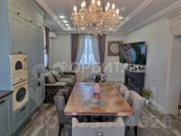 Полностью оборудована кухней от компании "Лазурит" с бытовой техникой: два встроенных холодильника, духовой шкаф, варочная панель, посудомоечная машина и микроволновка — всё остается!