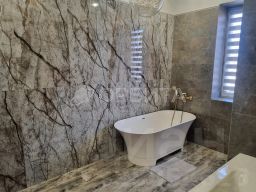 • Керамогранитный пол на первом этаже и кварц-винил на втором.
