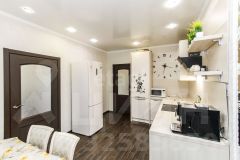 Первый этаж включает просторную кухню с обеденной зоной и гостинной. Также на этом этаже расположена спальня и ванная комната.