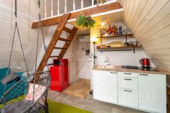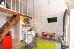Продается стильный дом в скандинавском стиле в районе Мелиораторов, с центральным водоснабжением. Построен из экологически чистых материалов. Панорамные окна делают дом максимально светлым и уютным. Перед входом просторная терраса. На 1 этаже кухня гостиная, санузел и с выходом на веранду. Второй этаж подготовлен для оформления спальни. Дом готов для круглогодичного проживания, по всему периметру теплый пол. Установлен кухонный гарнитур, стол, стулья, диван, телевизор, кондиционер. На участке построена шикарная баня, чан, есть теплица, парковочное место, переливной септик. Участок 4,2 соток, очень компактный, правильной формы с большим количеством плодоносящих деревьев, кедрами. Территория охраняемая. Дорога асфальтирована. Рядом расположены магазины Пятерочка, Магнит, аптеки.