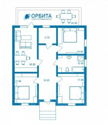 Просторная планировка на 1 этаже: Кухня-гостиная, 3 изолированные спальни, гостевой санузел, котельная и большая терраса с панорамным остеклением.