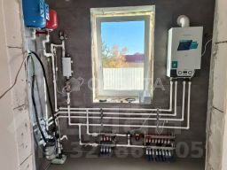 отопление газовое от теплого пола и дополнительно установлены батареи, электричество заведено в дом 380 кВт,