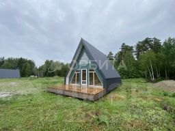 В доме на первом этаже большая кухня-гостиная с потолком более 4,5 метров и с большими панорамными окнами, здесь же расположена спальня и санузел. На втором этаже обустроена ещё одна спальня. С двух сторон дома большие открытые террасы.