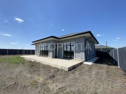 Планировка дома предполагает три спальни, два санузла, большую кухню-гостиную площадью 33 кв.м., большую террасу.