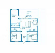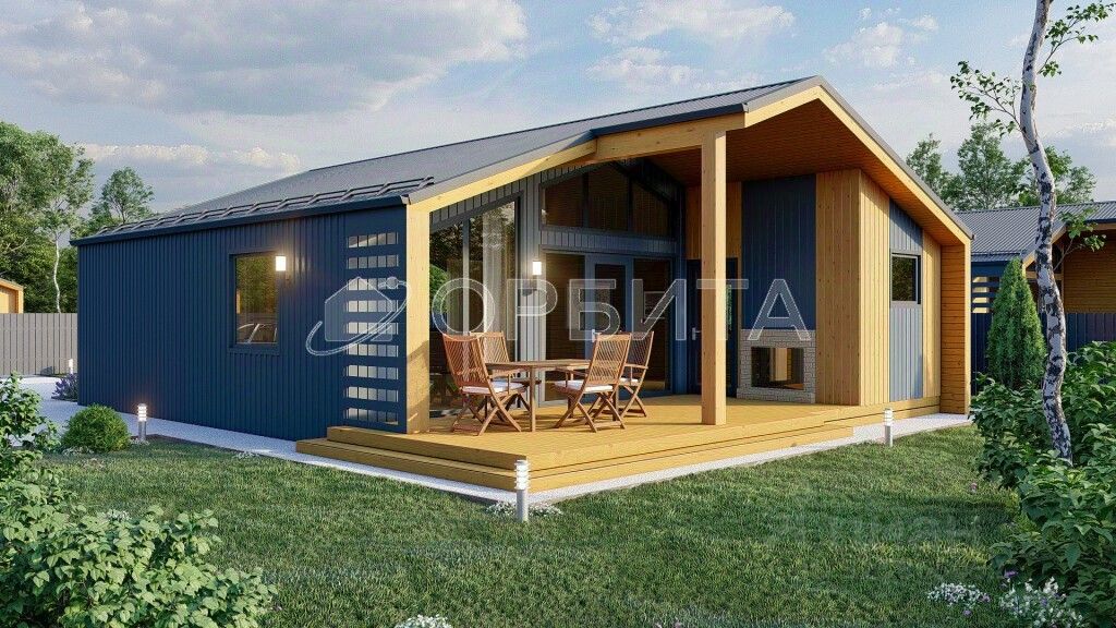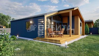 Проект с двумя спальнями, кухней-гостиной и сауной в доме. Высокие потолки позволяют обустроить третью спальню. Большая крытая терраса даёт возможность обустроить дополнительное место для отдыха.