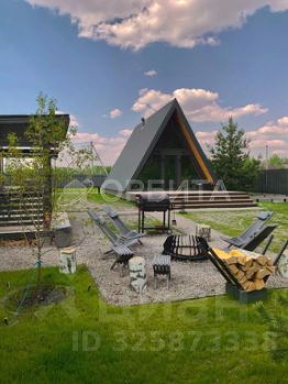 Концепция: Уединенный комплекс на собственной изолированной и благоустроенной территории. Архитектурная жемчужина — стильный треугольный дом A-Frame (47 кв.м.) по индивидуальному проекту, объединенный с современной баней и зонами отдыха.
