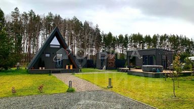 Продается эксклюзивный дизайнерский комплекс для отдыха и бизнеса: треугольный дом A-Frame, баня, джакузи Polaris.