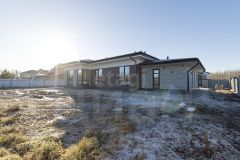 Площадь дома состоит из: гараж плюс котельная 34м2, кухня-гостиная 51,5м2, прачечная 4м2, входная группа (коридор) 5м2, гардеробная 4м2, комнаты 15,5 / 15,5 / 13,5м2, холл 15м2, с/у 6,5м2, терраса 11м2.