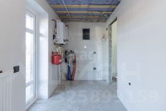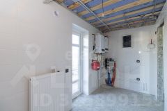 Потолки высотой 3,4 метра, теплые полы + радиаторы. Сантехника и электрика выполнены, стены оштукатурены под маяк.