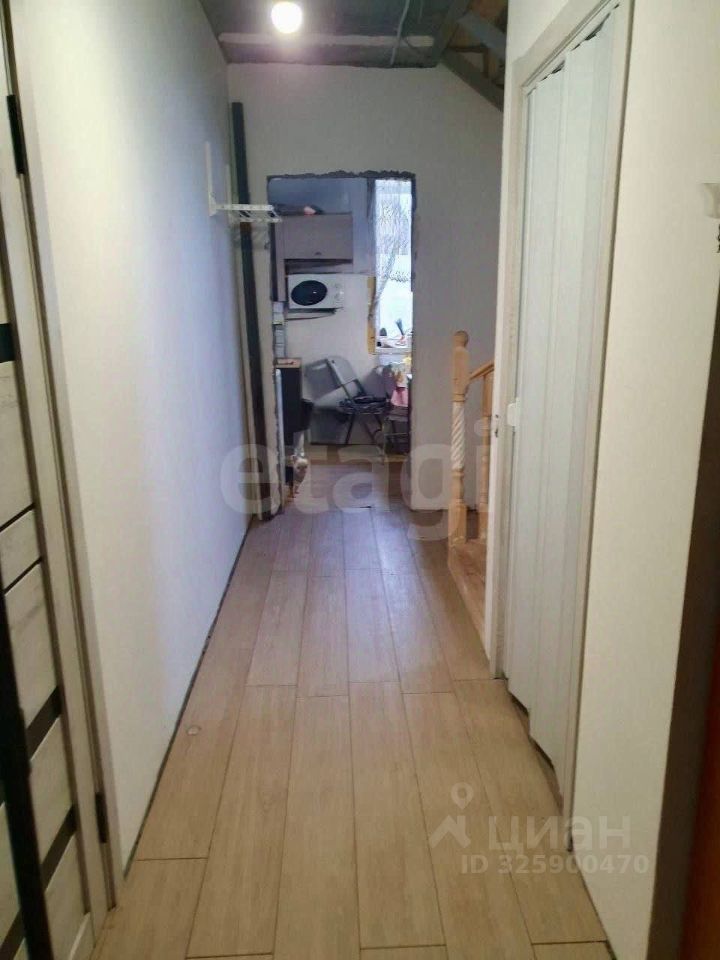 В доме выполнена внутренняя отделка: стены выровнены белой штукатуркой под маяк, частично сделан косметический ремонт, смонтирована система вытяжки.