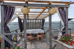 Инфраструктура поселка включает видеонаблюдение, шлагбаум на въезде и асфальтированный подъезд до территории. Внутри поселка дороги покрыты щебнем. В шаговой доступности находится водоем с оборудованным пляжем, мангальными зонами, беседками и прогулочными дорожками. Дом полностью готов к проживанию: свежий ремонт, теплые полы во всех помещениях, современная мебель и техника. Кухня укомплектована гарнитуром и необходимой бытовой техникой, ванная комната оснащена всем необходимым, спальни оборудованы шкафами-купе. Участок огорожен, предусмотрены ворота и калитка для удобного заезда и парковки.