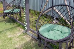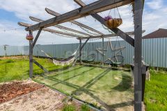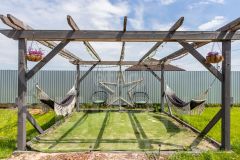 лавочка мангал .Детская зона отдыха с двумя качелями и гамаками.