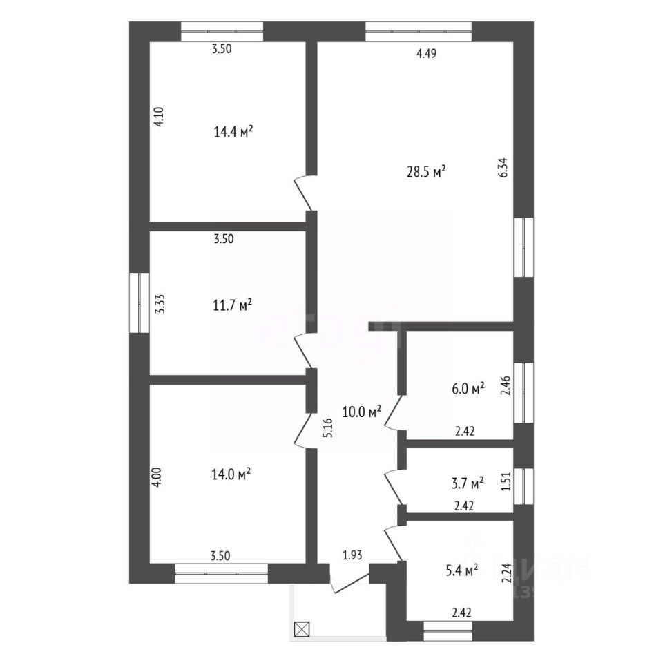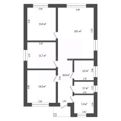 и метров 300 до участка асфальтирована. Дом готовый, отопление электрическое. В доме 3 комнаты по 12-15 кв.м., котельная, санузел с ванной и кухня-гостиная около 30 кв.м.