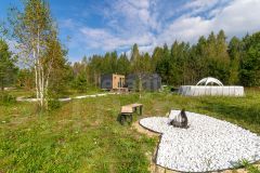 УЧАСТОК. На территории участка организована зона барбекю, место для посиделок у костра, выложенное декоративным белым камнем. Площадь участка позволяет грамонтно зонировать пространство.