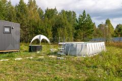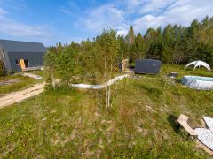 На участке (20 соток) в 2024 году построен модульный дом (22 кв.м.) и баней (11,8 кв.м.). Дом и баня зарегистрированы, введены в эксплуатацию, все документы оформлены. К дому и бане подведены коммуникации: скважина, септик, электричество. Дом подходит для круглогодичного проживания.