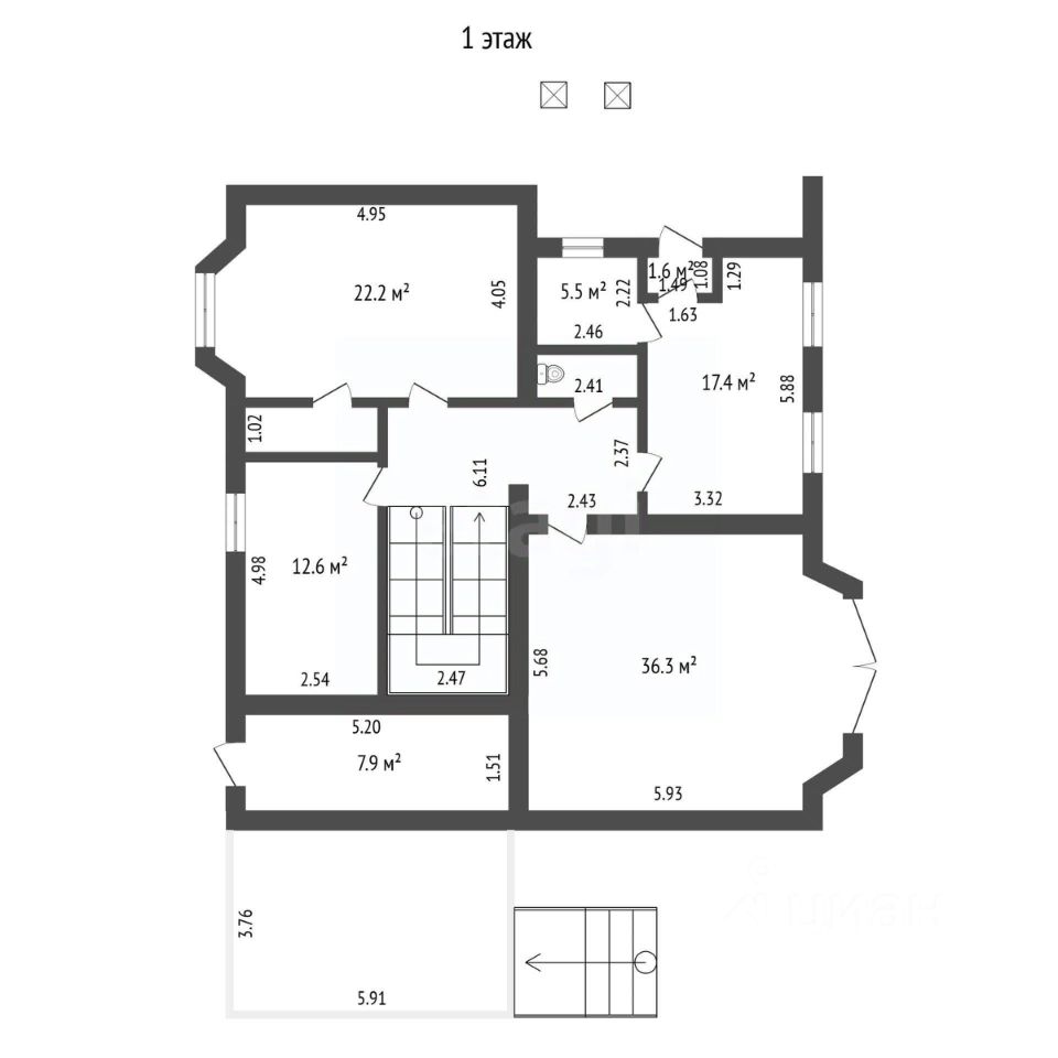 На цокольном этаже расположены гараж на две машины, котельная, спортзал, мастерская и техническое помещение с выходом во двор.