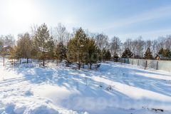 Участок граничит с лесом, в котором протекает ручей. Выход в лес прямо с участка. Высокий, ровный правильной формы. На участке растут молодые сосны.