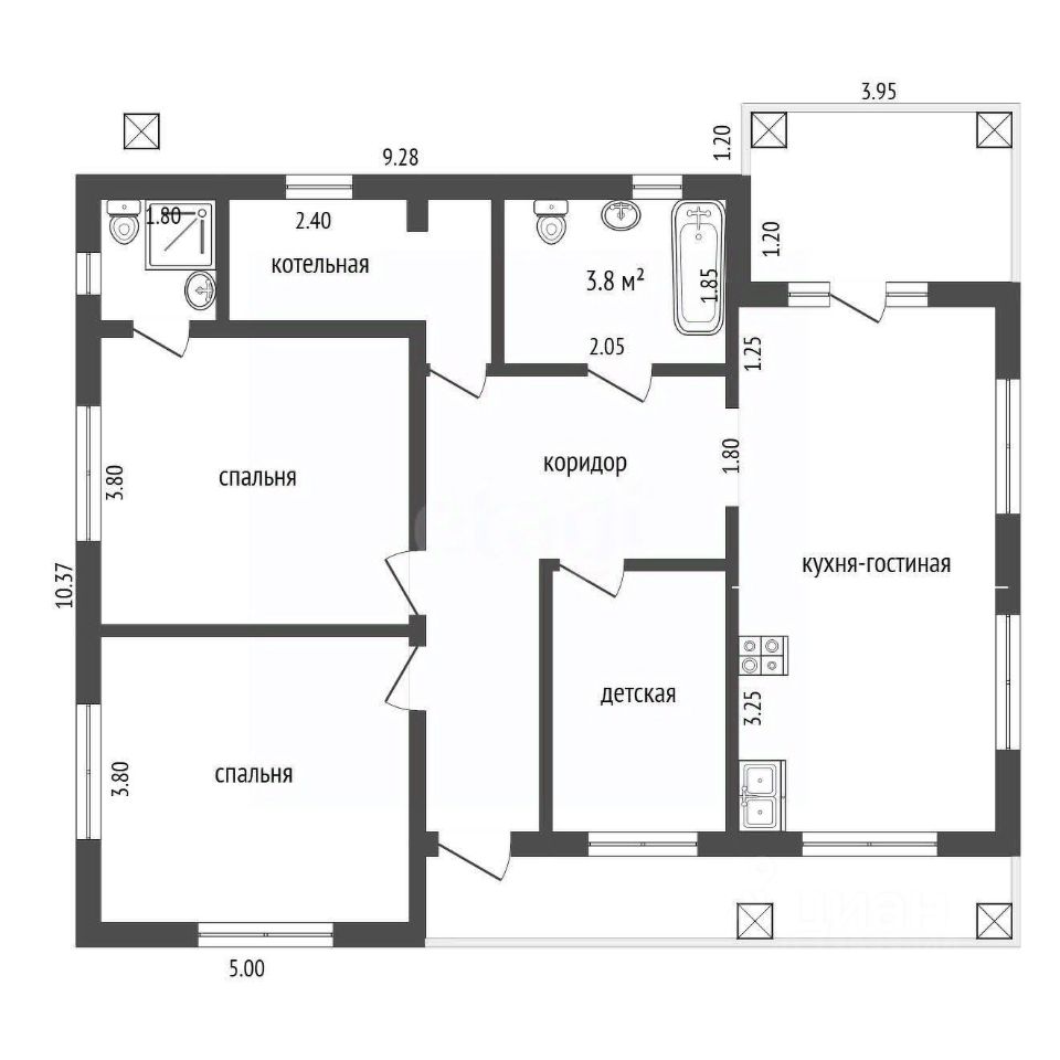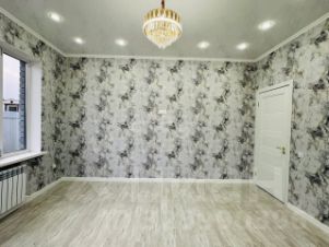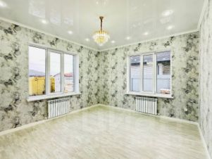 В доме выполнен качественный современный ремонт с использованием практичных материалов: натяжные потолки, ламинат, керамическая плитка и обои.