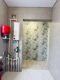 Все инженерные системы готовы к эксплуатации — проведено электричество 380 В, смонтированы водяные фильтры, запущено отопление, теплые полы по всему дому , установлен септик из железобетонных колец объемом 5 кубометров.