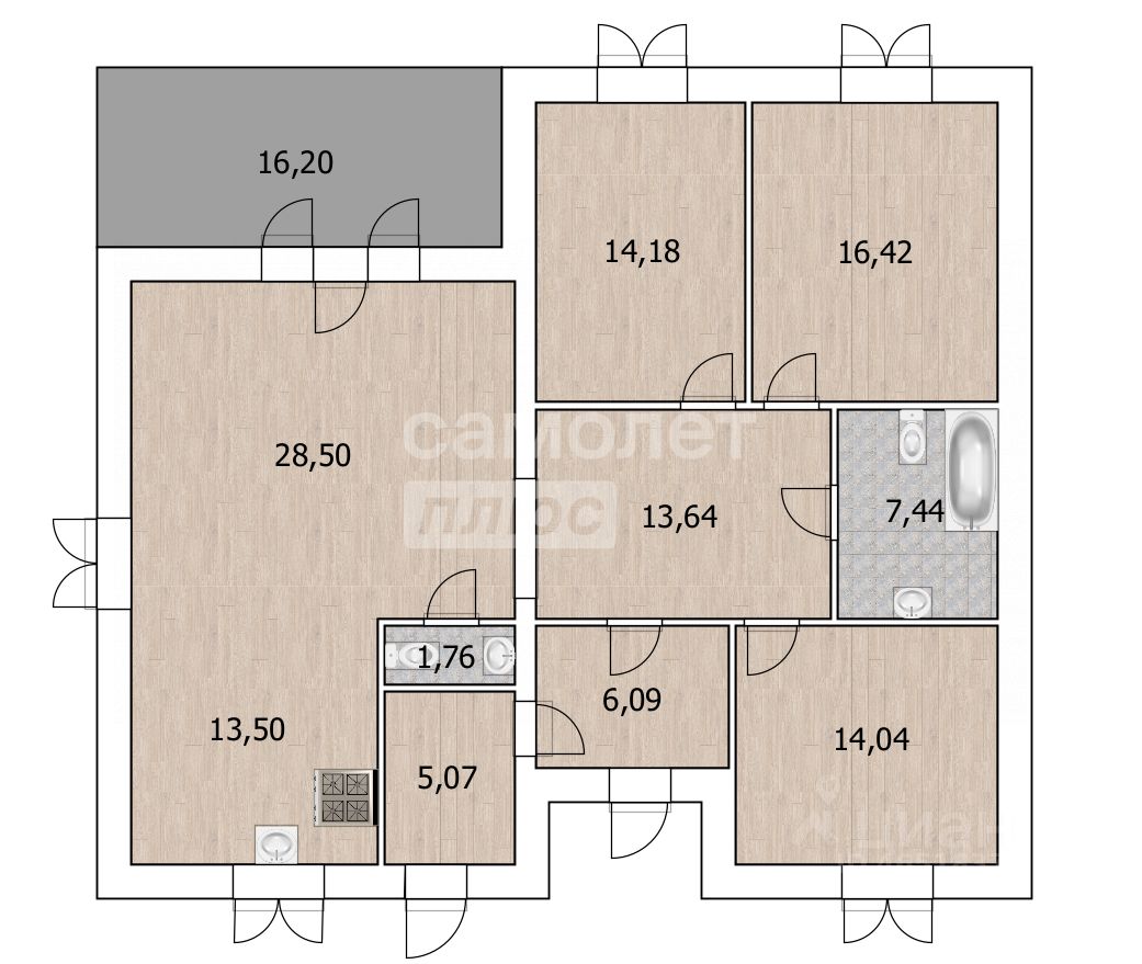 Три просторные спальни, котельная, два сан. узел.