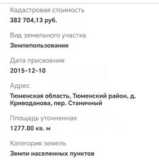 Арт. 93799907 К продаже представлен участок 12,77 соток, по Старо Тобольскому тракту, в д. Криводанова.