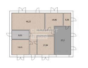 Три спальни 14,8+14,4+17,8, сан. узел 8 м2, техническое помещение 5,5 м2