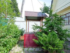 Домик оборудован всем необходимым, 2 этажа. Прихожая, кухня и гостиная на первом, спальня и кладовая на втором. Отапливается печкой. Под домом тех этаж, используется как мастерская.