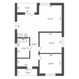 Дом с функциональной планировкой, кухня-гостиная и две спальные комнаты, санузел, гардеробная.