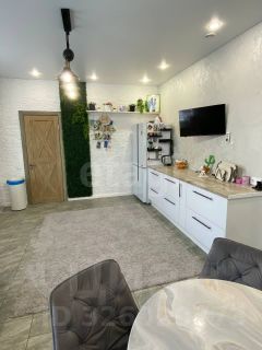 Основной дом построен в 2023 году из газоблока Poravit d300 на ленточном утепленном фундаменте. Площадь 65,5 м² включает прихожую, спальню, гардеробную, кухню-гостиную, ванную с душем и баню с кирпичной печью и кедровой парилкой. Отопление — электрический теплый пол с резервом от печи. Отделка выполнена качественно: натяжные потолки, декоративная штукатурка, керамогранит, встроенная кухонная техника. Дом технически готов, фасад не облицован — возможность достройки или индивидуального оформления.