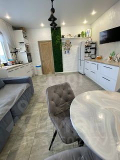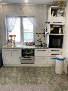На участке — дополнительные строения: утепленный гостевой домик с гаражом и навесом (коммуникации подведены), хозблок 64 м с туалетом, детская площадка с батутом, септик на 12 м. Плодовые и декоративные насаждения, газон, место под огород.
