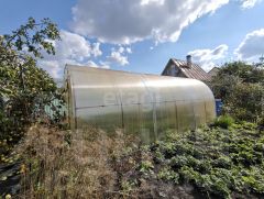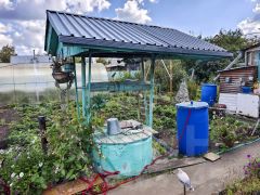 На участке многолетние посадки ягод, качественно обработана земля (грядки, место под посадки овощей). Большая теплица, многолетние цветы в большом количестве.